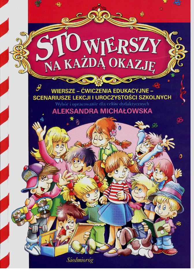 Tematycznie dobrane i pięknie ilustrowane wiersze najwybitniejszych polskich poetów: Jana Brzechwy, Wandy Chotomskiej, Konstantego Ildefonsa Gałczyńskiego, Ludwika-Jerzego Kerna, Marii Konopnickiej, Juliana Tuwima, ks. Jana Twardowskiego i innych. Wiersze do antologii zostały wybrane tematycznie, zgodnie ze świętami i ważnymi datami kalendarza szkolnego. Adresatem antologii są dzieci w wieku od 5 do 9 lat, ich rodzice i nauczyciele. Antologia podzielona jest na 25 rozdziałów. Tematem każdego rozdziału są ważne święta, daty i okazje w kalendarzu szkolnym ucznia: początek roku szkolnego, polski wrzesień, Dzień Nauczyciela, Święto Zmarłych, Święto Niepodległości, andrzejki itd. Poszczególne rozdziały zawierają po kilka wierszy, a każdy z wierszy porusza odmienne zagadnienie dotyczące tematu rozdziału. Ostatnie strony z każdego rozdziału zawierają opracowanie edukacyjne (ogólną charakterystykę tematu, pytania, scenariusze zajęć z dziećmi, zadania oraz definicje trudniejszych słów). W antologii znajduje się 118 wierszy najwybitniejszych polskich poetów. Antologia Sto wierszy na każdą okazję została pomyślana jako podręcznik uzupełniający w klasach I-III szkoły podstawowej. Jest doskonałym narzędziem do pracy w klasie, zwłaszcza przy omawianiu świąt i ważnych dat w kalendarzu szkolnym oraz przy przygotowaniu uroczystości szkolnych. Antologia nadaje się także do domowych zajęć i zabaw z dziećmi. Ta pięknie wydana publikacja stanie się wreszcie cennym prezentem dla każdego dziecka, które kocha wiersze i atrakcyjne ilustracje. ATUTY KSIĄŻKI Ľ Antologia zbudowana wokół 25 tematów - najważniejszych dat w kalendarzu. Ľ Różnorodne wiersze pozwalające na kompleksowe opracowanie każdego tematu. Ľ Do każdego tematu strony edukacyjne zawierające treści informacyjne, pytania do wierszy, scenariusze zajęć i zadania. Ľ Atrakcyjne ilustracje, uzupełniające przekaz dydaktyczny.