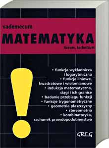 Vademecum zawiera zakres wiedzy z matematyki na poziomie liceum i technikum. Znajdziemy tu: funkcję wykładniczą i logarytmiczną, funkcje liniowe, kwadratowe i wielomianowe, indukcję matematyczną, ciągi i ich granice, badanie przebiegu funkcji, funkcje trygonometryczne, geometrię płaszczyzny, stereometrię, kombinatorykę oraz rachunek prawdopodobieństwa.