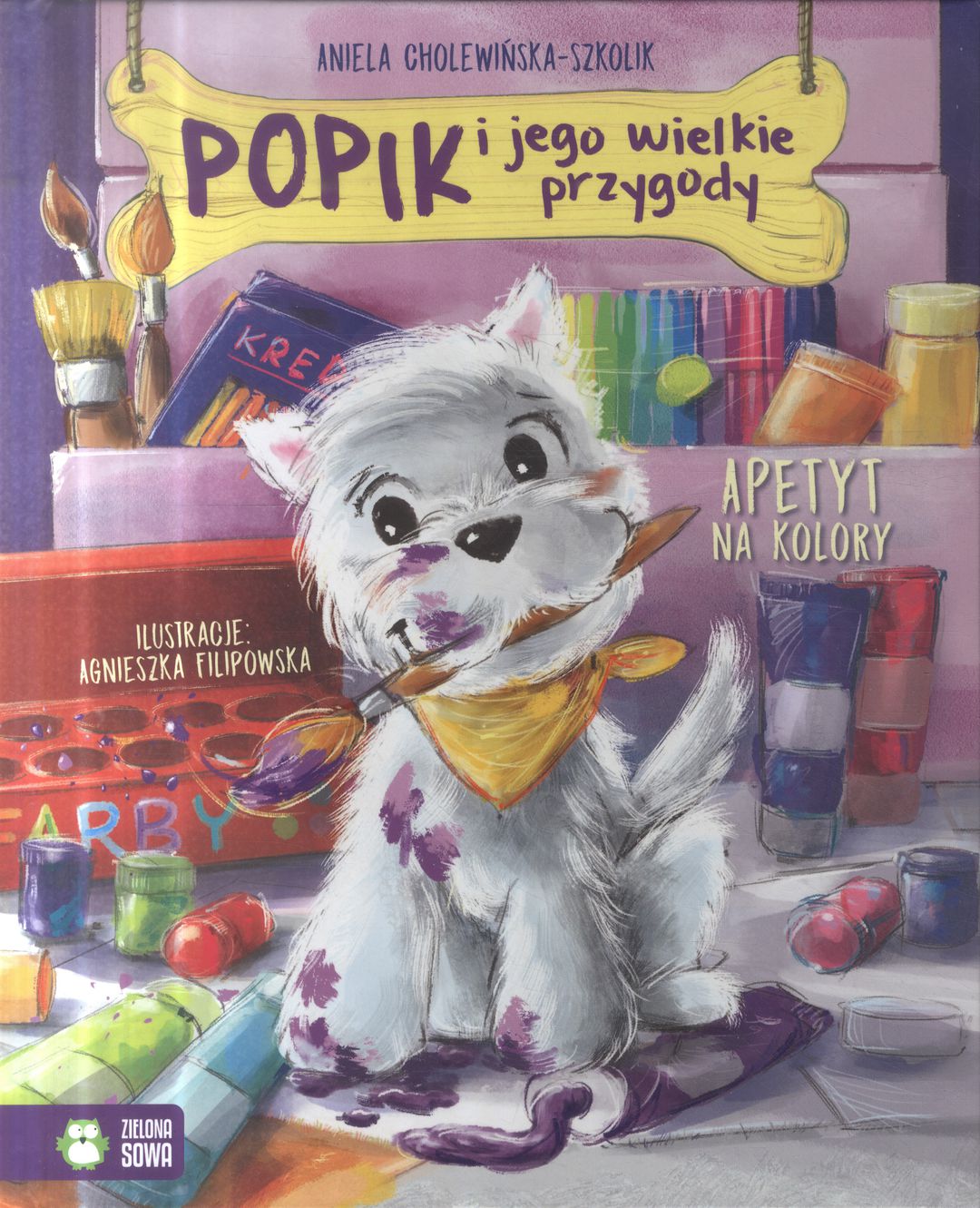 Znacie Popika? To piękny BIAŁY terierek, bardzo zadowolony ze swojego życia. Jednak gdy pewnego dnia Misia zaczyna zachwycać się KOLOROWYMI ptakami, biel nagle przestaje się podobać Popikowi… Czuje się taki… bezbarwny. Psiak postanawia zdobyć więcej kolorów. Tylko jak? Sięgnijcie po drugi tom przygód Popika, psiego towarzysza Misi. Tym razem poza pogonią za kolorami przed Popikiem także inne przygody: poszukiwanie piłki zagubionej wśród jabłek, wizyta u prawdziwego psa wystawowego, a nawet wyprawa na jarmark! Co jeszcze może przydarzyć się w niezwykłym psim życiu Popika? „Popik i jego wielkie przygody” to kolejna, po bestsellerowej „Misia i jej mali pacjenci”, seria autorstwa Anieli Cholewińskiej-Szkolik dla najmłodszych czytelników. Tym razem głównym bohaterem tych ciepłych historii jest piesek Misi – biały terier Popik.