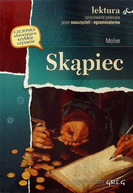 Skąpiec / Molier ; opracowały Anna Popławska, Agnieszka Wożny. - Wydanie 5 rozszerzone. - Kraków : Wydawnictwo Greg, copyright 2020. - 120 stron : ilustracje ; 20 cm.