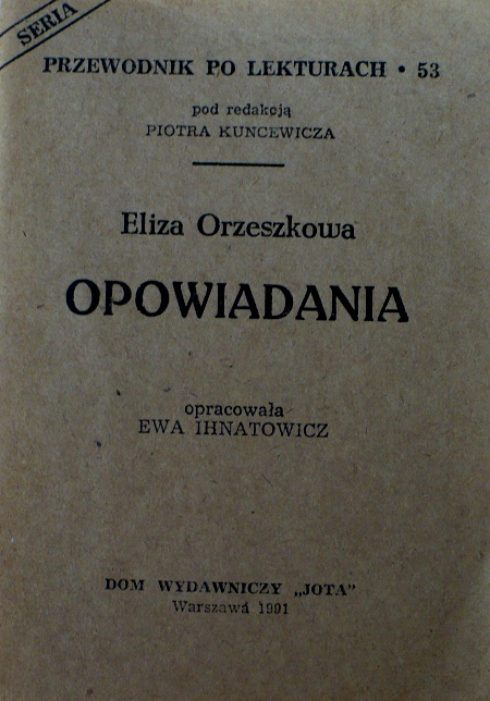 Eliza Orzeszkowa "Opowiadania" / oprac. Ewa Ihnatowicz. - Warszawa : "Jota", 1991. - 42, [3] s. ; 14 cm.